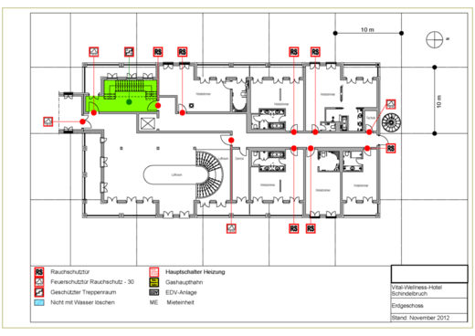 Die Feuerwehrpläne werden in Abstimmung mit dem zuständigen Brandschutzamt auf der Grundlage der DIN 14095 erstellt. Bestandteil der Feuerwehrpläne sind Geschoßpläne und der Übersichtsplan. Die Pläne für die Feuerwehr werden in laminierter Form angefertigt. Alle Pläne werden mittels CAD erstellt und stehen im pdf Format auf Datenträgern zur Verfügung.