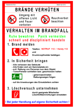 Die Brandschutzordnung wird nach DIN 14 096 - 1, 2, 3 Ausgabe Januar 2000 erstellt.